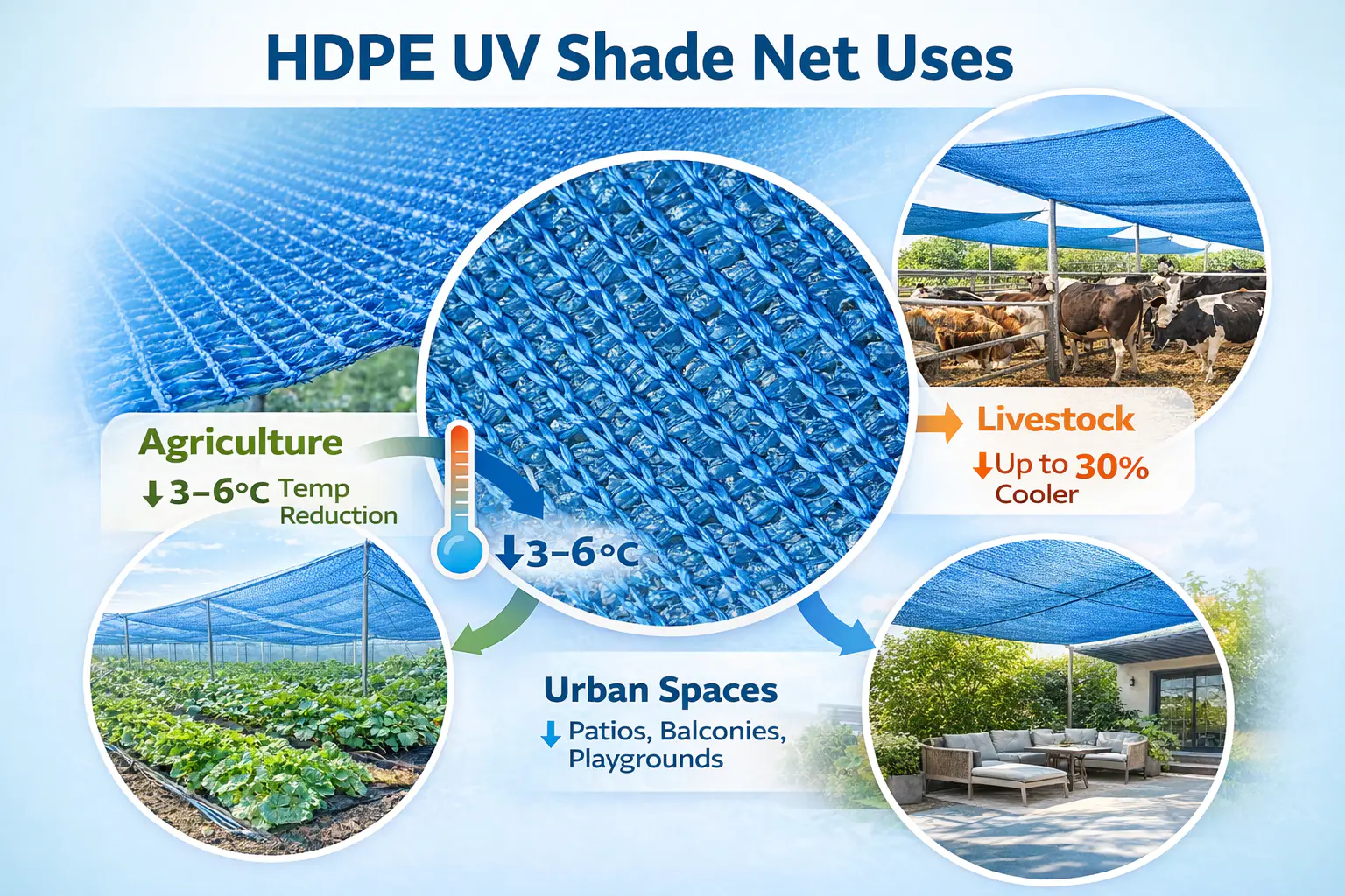 Sunshade Net , also known as shading net, is a special protective covering material mainly used in agriculture, fishing, animal husbandry, wind protection, and soil covering. At the same time, it can also be used for temporary fencing, packaging applications, greenhouse covering, etc. According to the shape of the wire, it can be divided into round wire sunshade net, flat wire sunshade net and round flat wire sunshade net. The sunshade net can shade the sunlight and control the temperature, maintain the good granular structure and air permeability of the soil, increase the oxygen content of the soil, facilitate the rooting and growth of the root system, and promote the production of above-ground plants. Moreover, shade nets can also be used to protect flowers and trees from frost damage. The installation method can choose curtain line sliding system and suspension system, and can also be used for the fixing of awnings and plastic greenhouses, as well as the roll-up type for external use of plastic greenhouses.